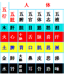 | 五行 | 五脏 | 六腑 | 季节 | 情绪 | 五官 | 五味 | 形体 |